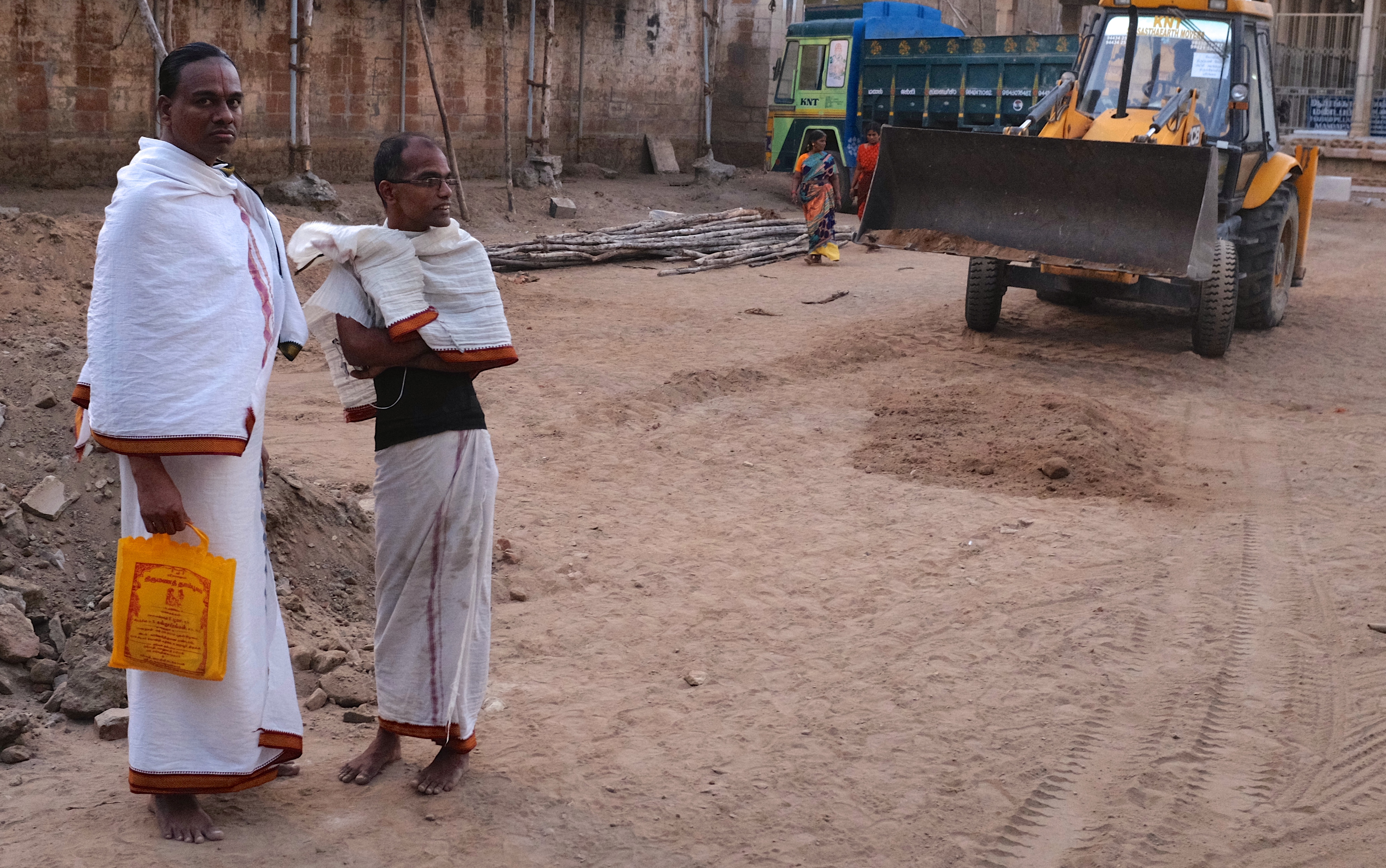 Construction works at the temple complex in Srirangam which is located on an island in the Kaveri River north of Tiruchirappalli. The Srirangam Temple occupies an area of 156 acres and is the largest hindu temple in the world.