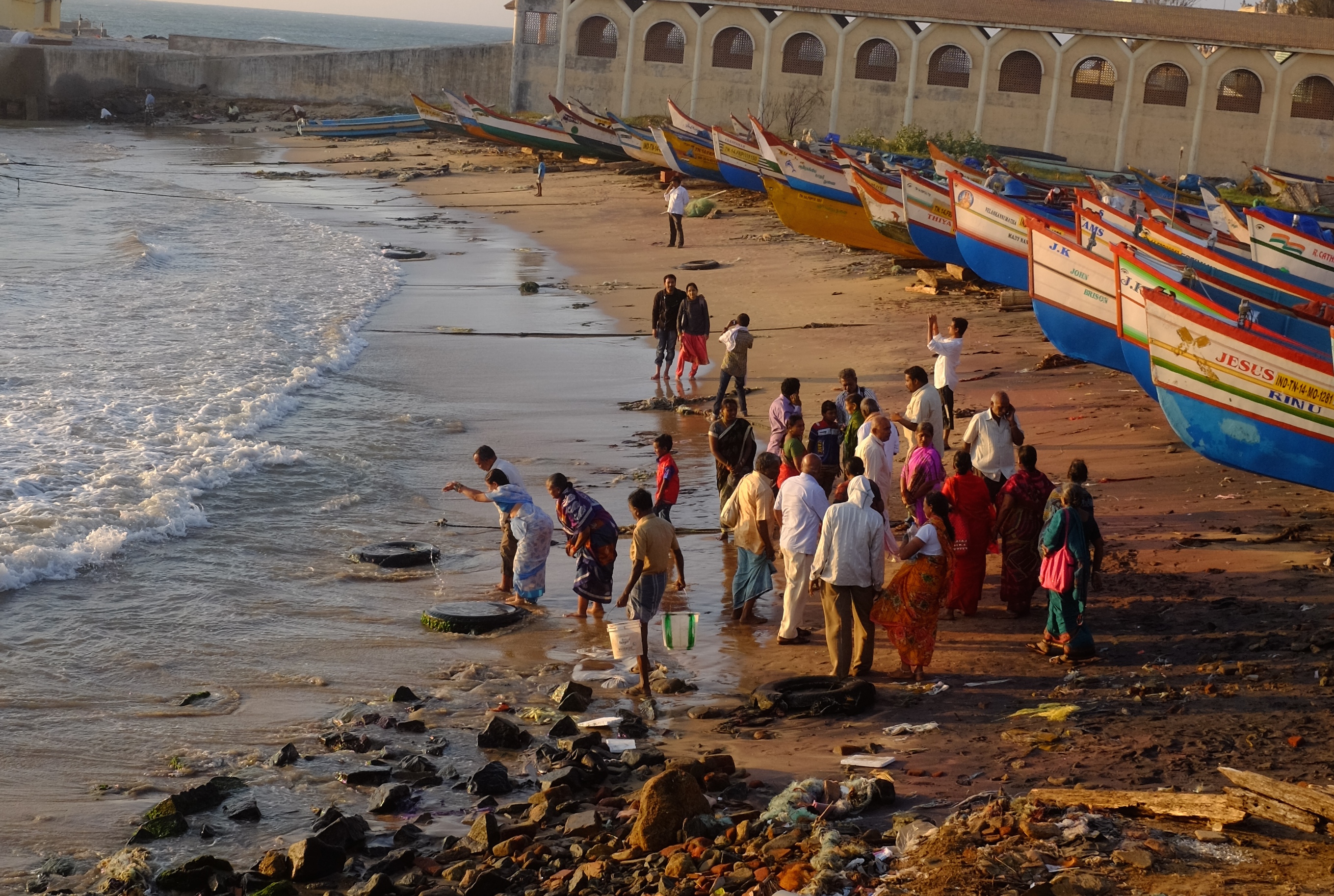 Holy dip at sunset, Thiruchendur