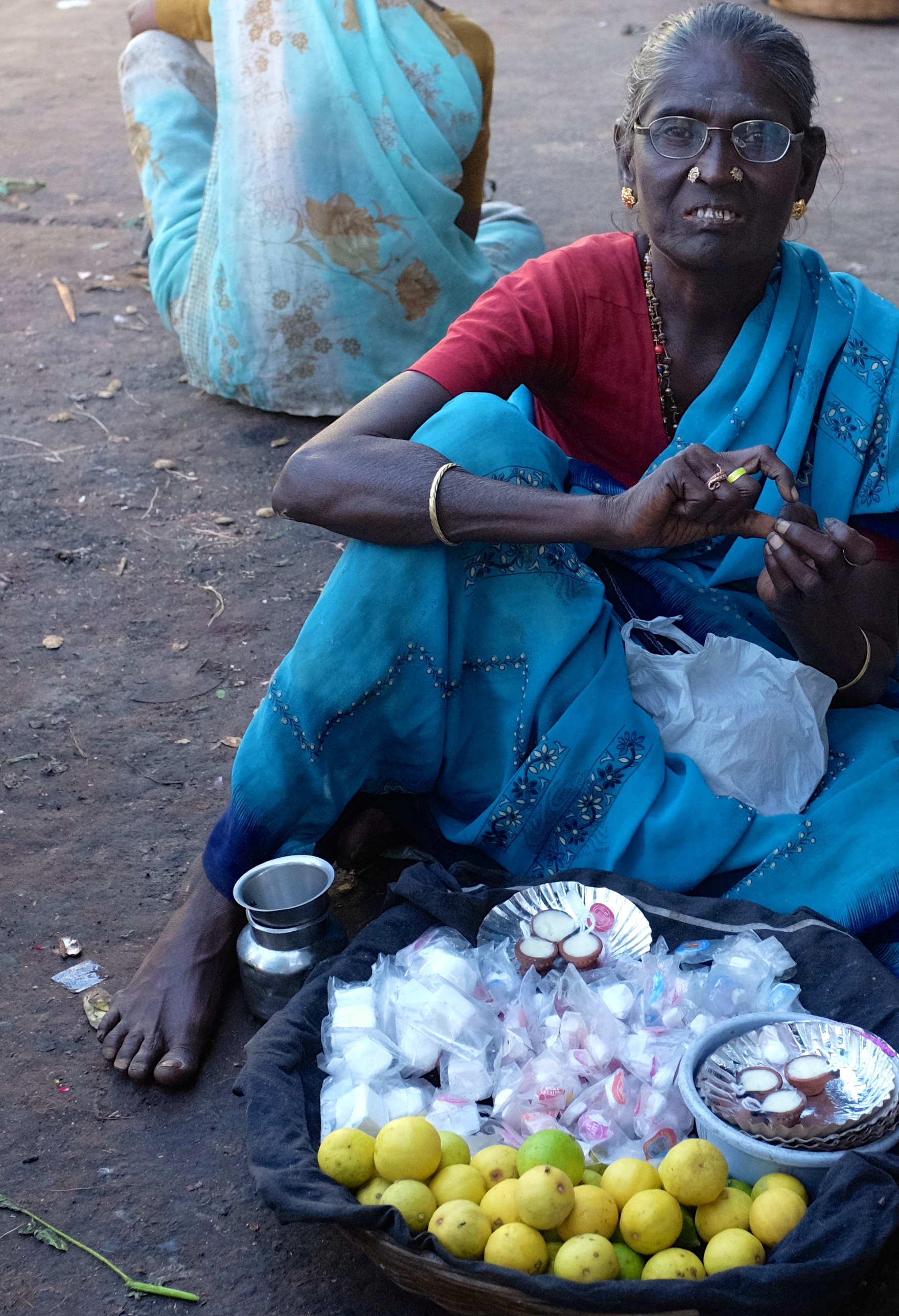 Vendor selling limes and lamps at the entrance to the Samayapuram Mariamman Temple, outside Tiruchirappalli