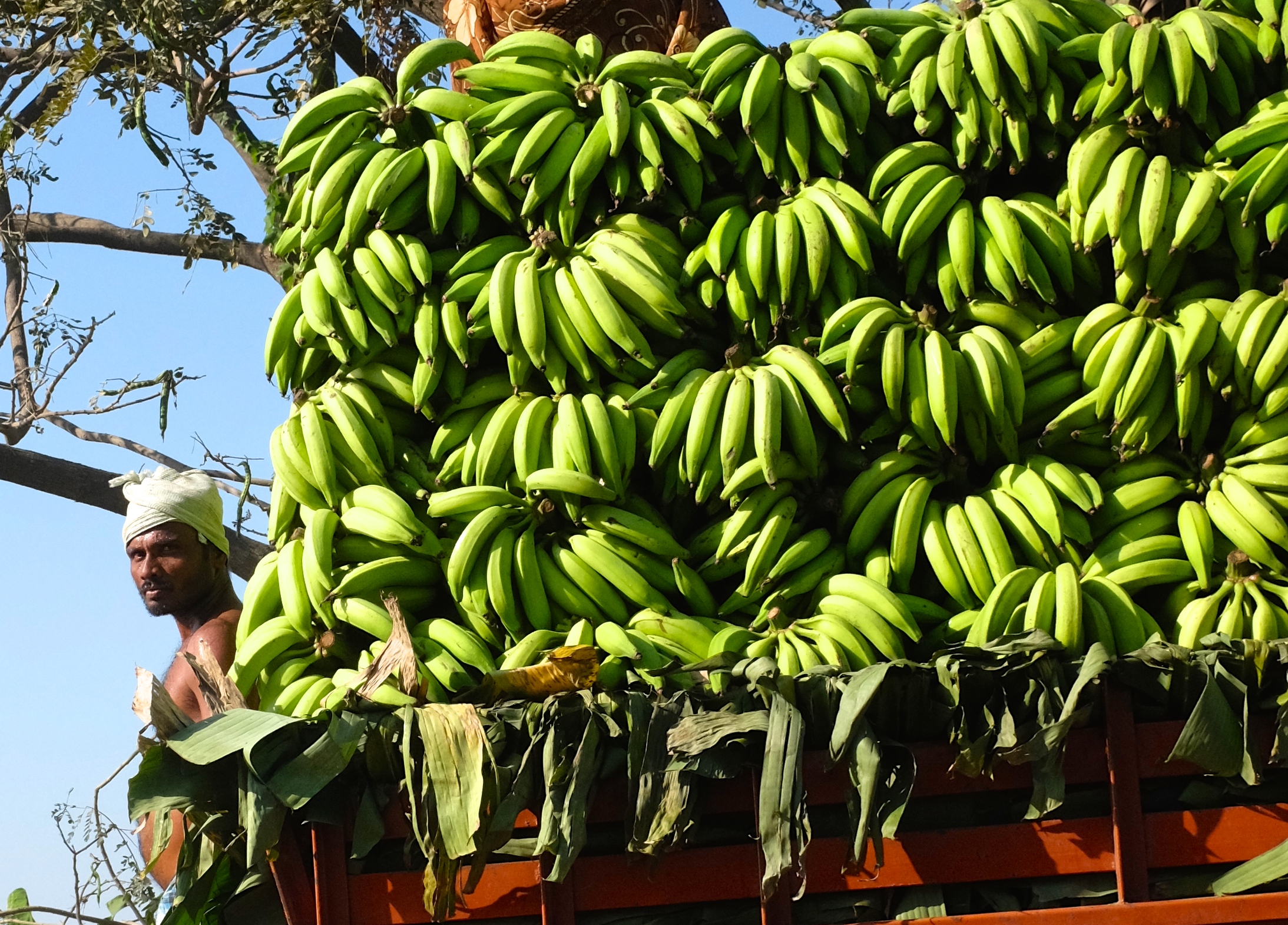 Freshly harvested bananas near Kallanai Dam in the Kaveri River, Tiruchirappalli District